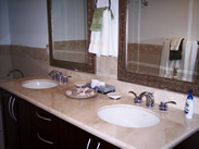 Gorgeous marble counter tops with one and two sinks. High quality luxurious towels and bath mats. Rain head showers fully tiled and huge! Deep Jacuzzi tub in Master suite. |